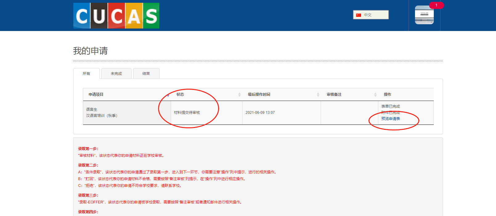 11、申请提交完成后,您可以查看申请审核流程,预览申请表。